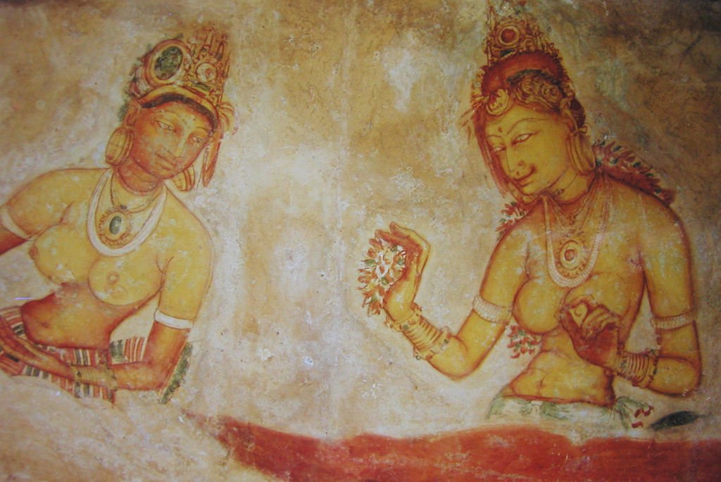 Another fresco from Sigiriya showcasing a delicate and intricate depiction of a female figure in ancient style, highlighting the artistry of the Sigiriya rock fortress.
